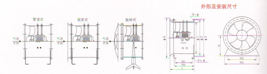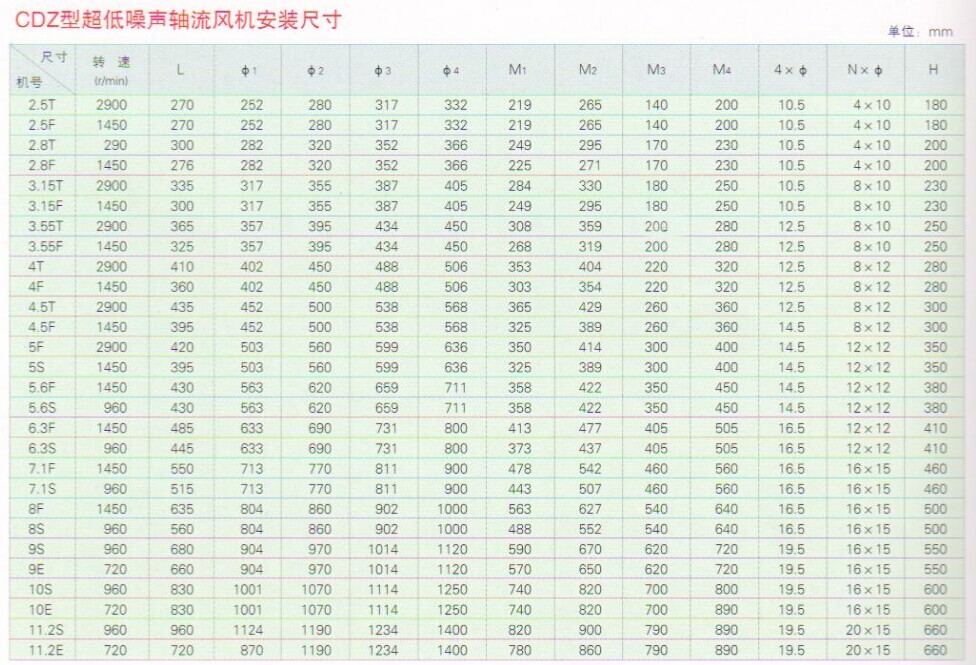 CDZ系列超低噪聲軸流風機下圖為安裝尺寸圖: