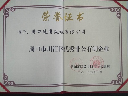 周口風機”品牌為己任,經(jīng)過一年來的努力奮斗,在12月20日,被中共川匯區(qū)委、川匯區(qū)人民政府授予“周口市川匯區(qū)優(yōu)秀非公有制企業(yè)",李生華董事長個人被評為“第三屆周口市川匯區(qū)非公經(jīng)濟人士、優(yōu)秀中國特色社會主義建設者”。