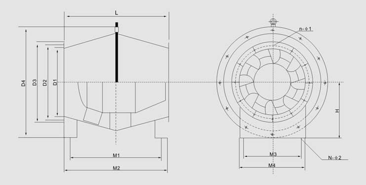 GXF型斜流式風(fēng)機(jī)是一種新型低噪高效節(jié)能型斜流式通風(fēng)機(jī),斜流式風(fēng)機(jī)流量大于離心風(fēng)機(jī),全壓高于軸流風(fēng)機(jī),體積小于離心風(fēng)機(jī),該風(fēng)機(jī)通過模擬機(jī)的試驗(yàn)研究,采用獨(dú)特的葉型和葉輪設(shè)計取得較高的全壓和流量參數(shù),并提高了風(fēng)機(jī)的全壓效率。SJG、FSJG型斜流式風(fēng)機(jī)是SWF型風(fēng)機(jī)的派生型產(chǎn)品,采用鼓型風(fēng)筒,調(diào)整氣流方向從而達(dá)到回收靜壓提高風(fēng)壓和效率的效果。故兼離心式風(fēng)機(jī)壓力系數(shù)較高和軸流風(fēng)機(jī)流量系數(shù)較高的特點(diǎn),具有噪聲低、耗電省、結(jié)構(gòu)緊湊等優(yōu)點(diǎn)。廣泛應(yīng)用于工礦企業(yè)賓館、飯店、博物館、體育館等的送排風(fēng)系統(tǒng)。