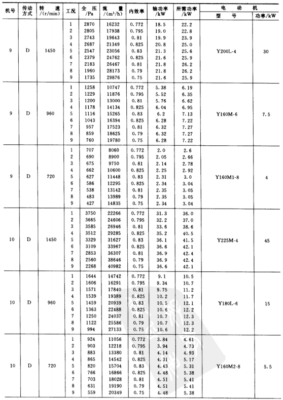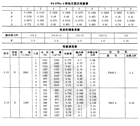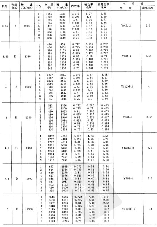 3)風(fēng)機(jī)的傳動(dòng)方式為D式